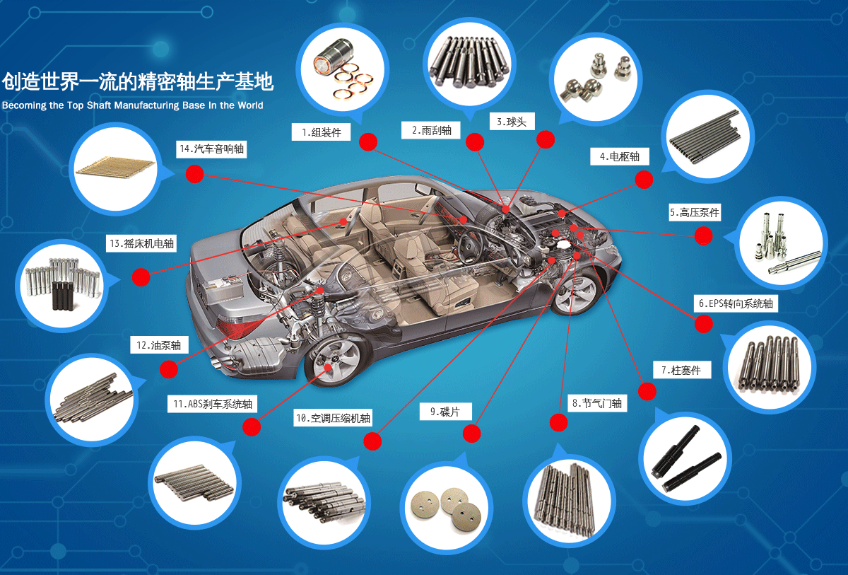 公司著眼于發(fā)展、創(chuàng)新,每年均投入大量人力和物力進行新產品研發(fā)及技術改造,當前公司產品包括各類汽車軸、精密馬達軸、工業零部件等近20個系列千余產品,遠銷世界各地,深受客戶信賴。